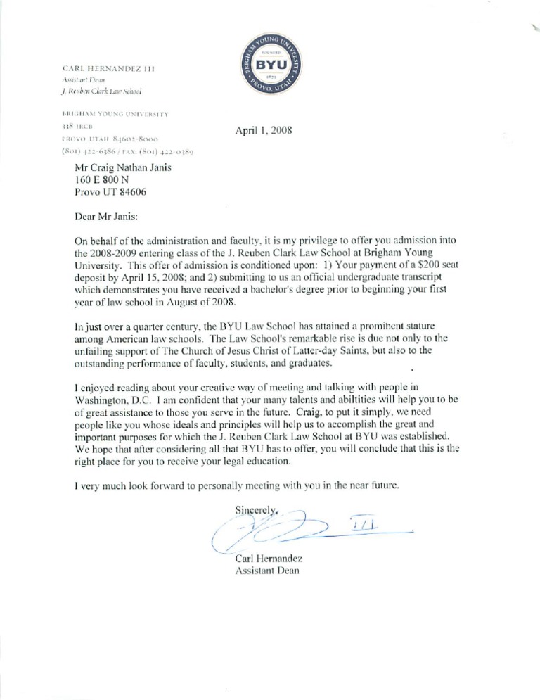 Law School Acceptance Letter PDF